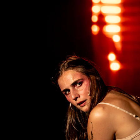 M. describes her extra-terrestrial encounters as spoken text over the repetitive and minimalist music composition by Philip Glass (1988). She looks back on her life, on her own painful memories, while trying to make sense of her reflection in the mirror. In search of joy and empowerment, she starts celebrating her experience of otherness and transition. Drawing on their own experiences of living as trans women, director Paige Eakin Young and performer Mara Snip guide their audience through a playful exploration of desire, shame and joy.